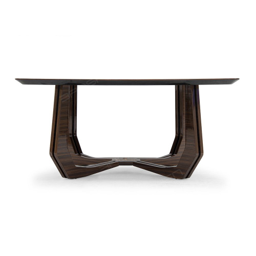 R: A mesa é construída a partir de madeira maciça com um acabamento durável, garantindo a longevidade e a beleza.