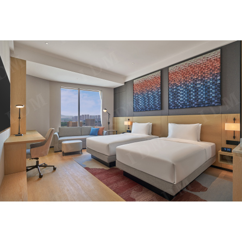 Esta coleção de móveis de hotel combina a estética elegante com a construção acidentada. Cada peça neste conjunto de quartos de móveis de hotel é construída para suportar o uso diário, mantendo sua aparência refinada.