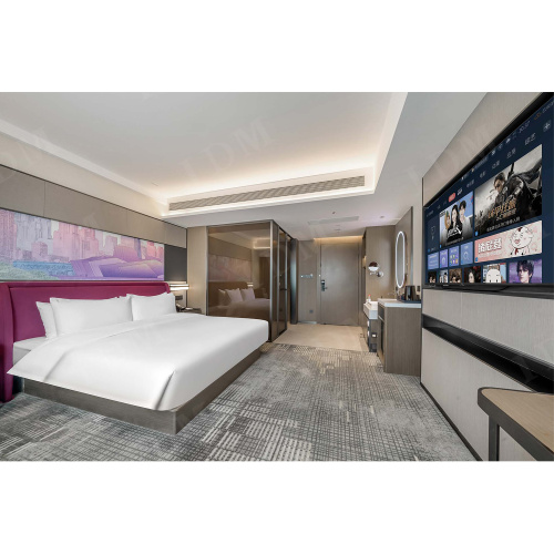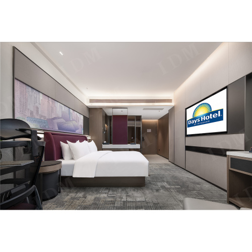 O conjunto de quartos do nosso hotel combina design atemporal com recursos práticos para criar um retiro acolhedor para seus convidados. A cama queen-size que rainha garante uma noite de descanso, enquanto a elegante mesa lateral acrescenta um toque de sofisticação. Cada peça deste conjunto de quartos de móveis de hotel é cuidadosamente projetada para aprimorar a estética e o conforto.